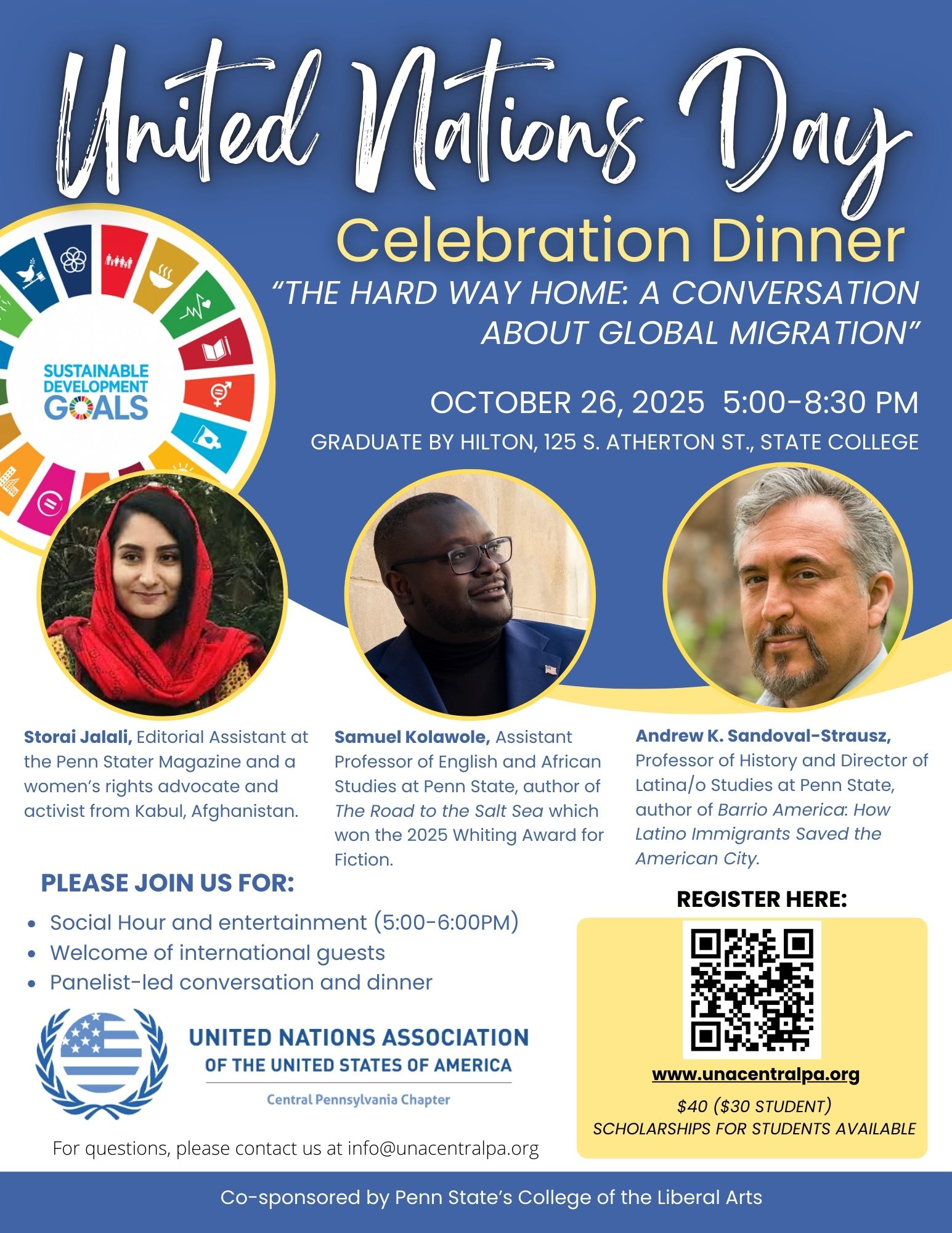 "The Hard Way Home: A Conversation about Global Migration" Social Hour (5-6pm) Welcome of international guests Panelist-led conversation and dinner