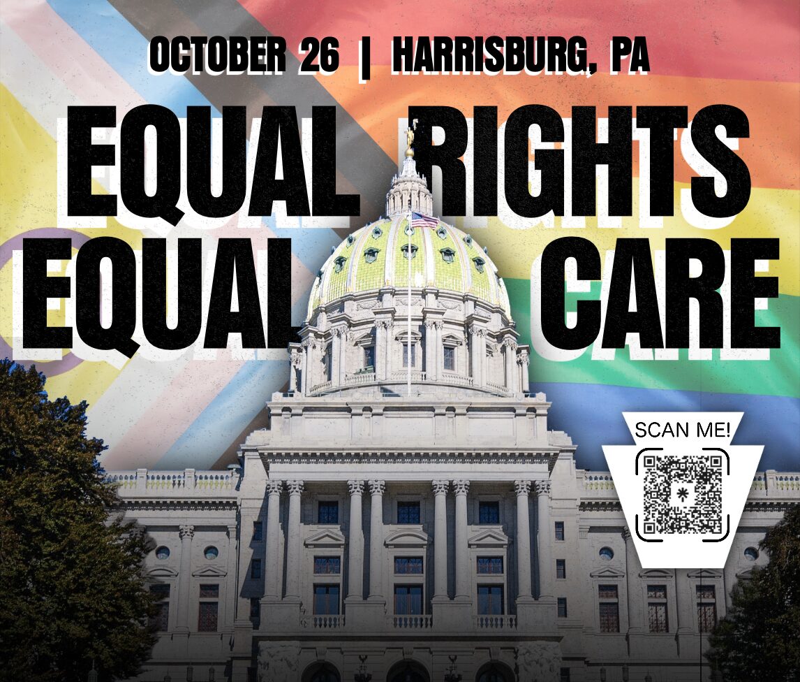 For the first time in over a decade, LGBTQIA+ Communities & Allies unite to march on Harrisburg to demand the protection of our rights and healthcare! The March begins to the Capitol Building in Harrisburg at 1pm. The Rally continues at the Capitol Steps at 2pm. Sign up to receive updates: www.linktr.ee/ERECPA